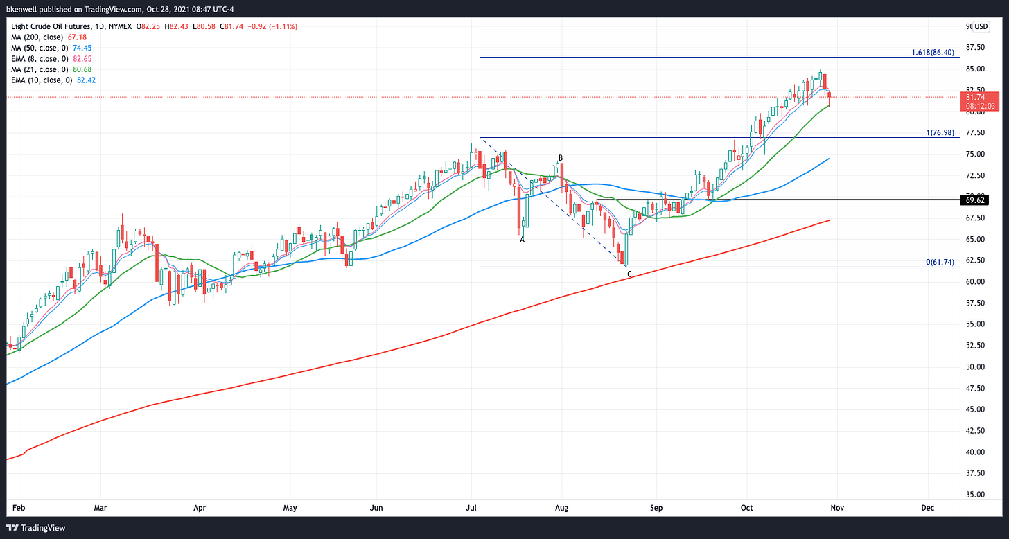 As far as sector ETFs go, keep an eye on XLY, XLF, XLK and of course, energy, although that’s mostly tied to oil and gas prices. For now, crude is finding support at a reasonable level. A daily-up rotation/a move back over the 10-day could put $85 back in play, which would give life to XLE and OIH.